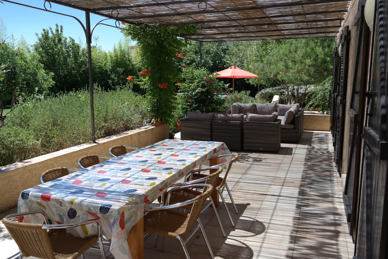 Outside there is an enormous terrace for outdoor eating and chilling in the evening, a large beautiful mature garden with figs, pomegranites & other fruits. A gardener attends all year round. There is automatic watering (arrosage) which keeps the lawn very green.