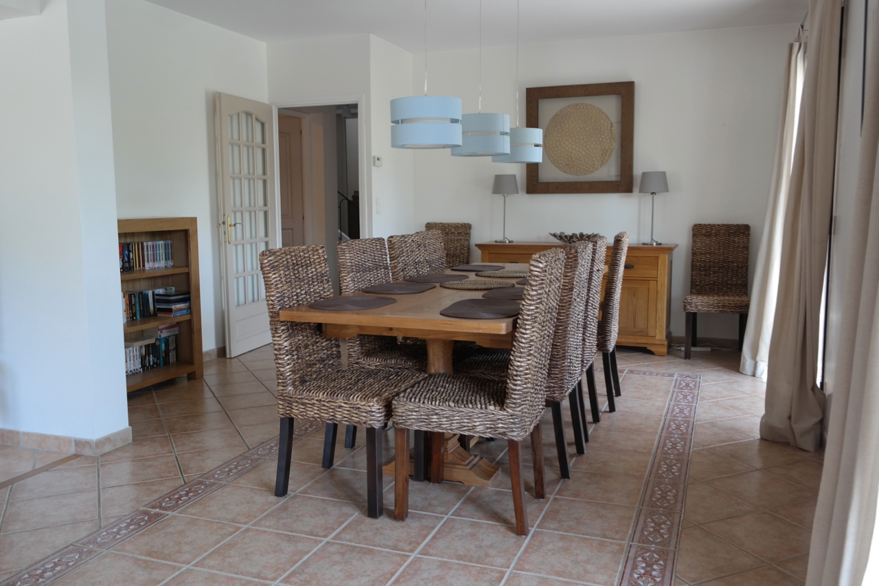 On the terrace there is a large outdoor table and plenty of bistro chairs for outdoor dining, ideal for wet swimmers etc.