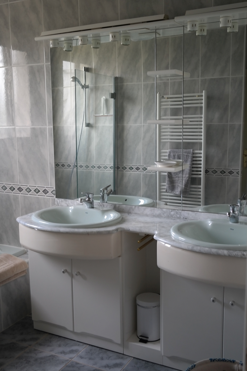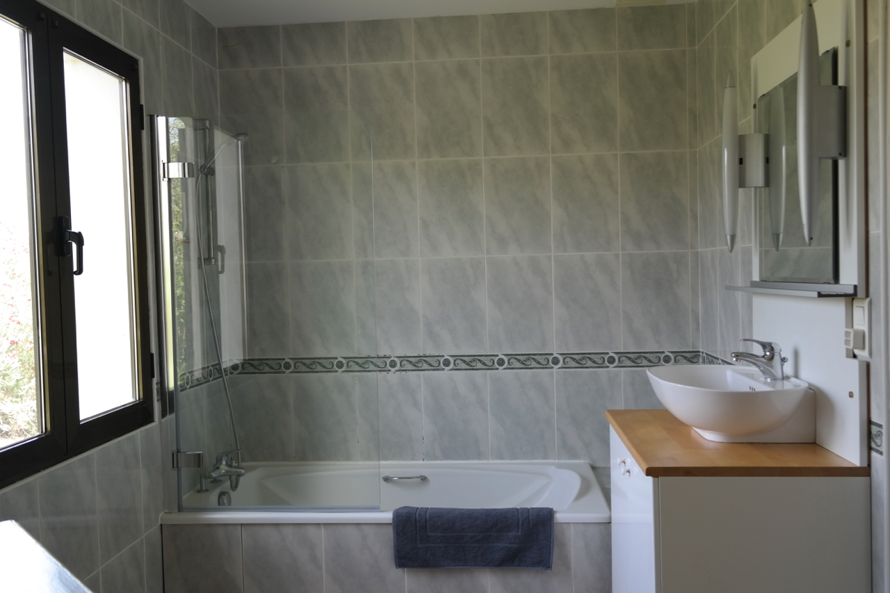 Upstairs: bath and Hans-Grohe shower over, again very good.